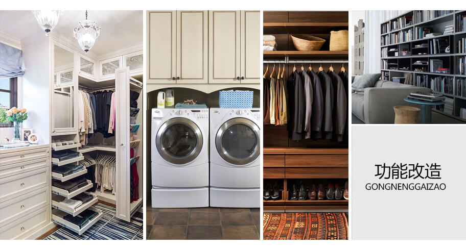 4. 硬装改造:针对精装修楼盘,阳台/洗衣池/橱柜/衣库改造、更换墙纸硬包等。